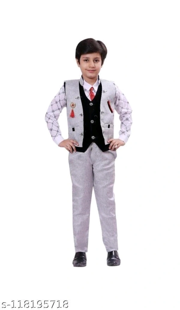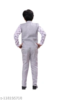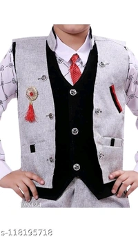 3 piece boys suit set of waistcoat pant and shirt for 2-11 years kids clothing setName: 3 piece boys suit set of waistcoat pant and shirt for 2-11 years kids clothing setTop Fabric: Cotton BlendBottom Fabric: Jute CottonSleeve Length: Long SleevesTop Pattern: CheckedBottom Pattern: SolidNet Quantity (N): SingleAdd-Ons: WaistcoatSizes:12-18 Months (Top Chest Size: 22 in, Top Length